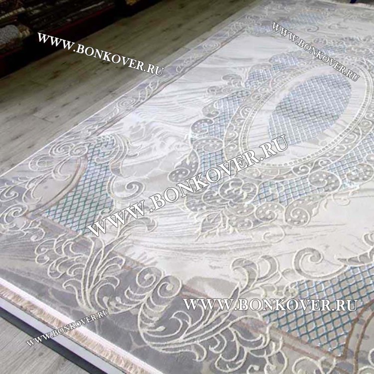 Ковер Турция Для Гостиной Дизайн 94 Серый с Голубым станет идеальным дополнением интерьера, оформленного в современном или классическом стиле. Мягкое, но прочное, ковровое покрытие обеспечивает тепло- и шумоизоляцию, отличается длительным периодом эксплуатации, пожаробезопасностью, экологичностью и высокой износостойкостью, является отличной преградой от повышенной влажности в помещении и утеплителем для холодного пола. Благодаря качеству материалов, ковер не деформируется, сохраняет форму под тяжестью предметов мебели. За его поверхностью легко ухаживать.